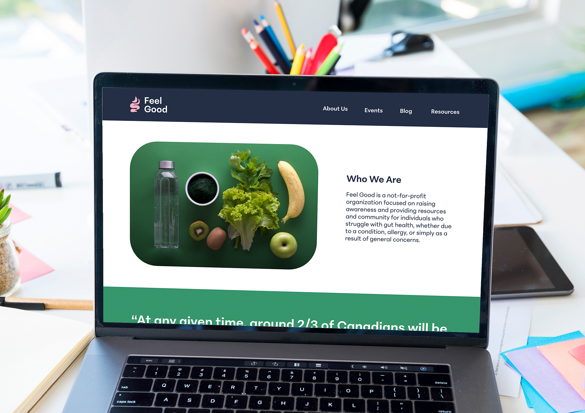 Simple yet engaging graphics were the main inspiration for the design of the assets, aimed at raising awareness. The graphics style is simplified and uses brighter and attention-grabbing colours to stop people in their tracks. Inspiration was taken from the abstract shapes found in a healthy gut microbiome to tie-in the health-conscious focus of Feel Good.